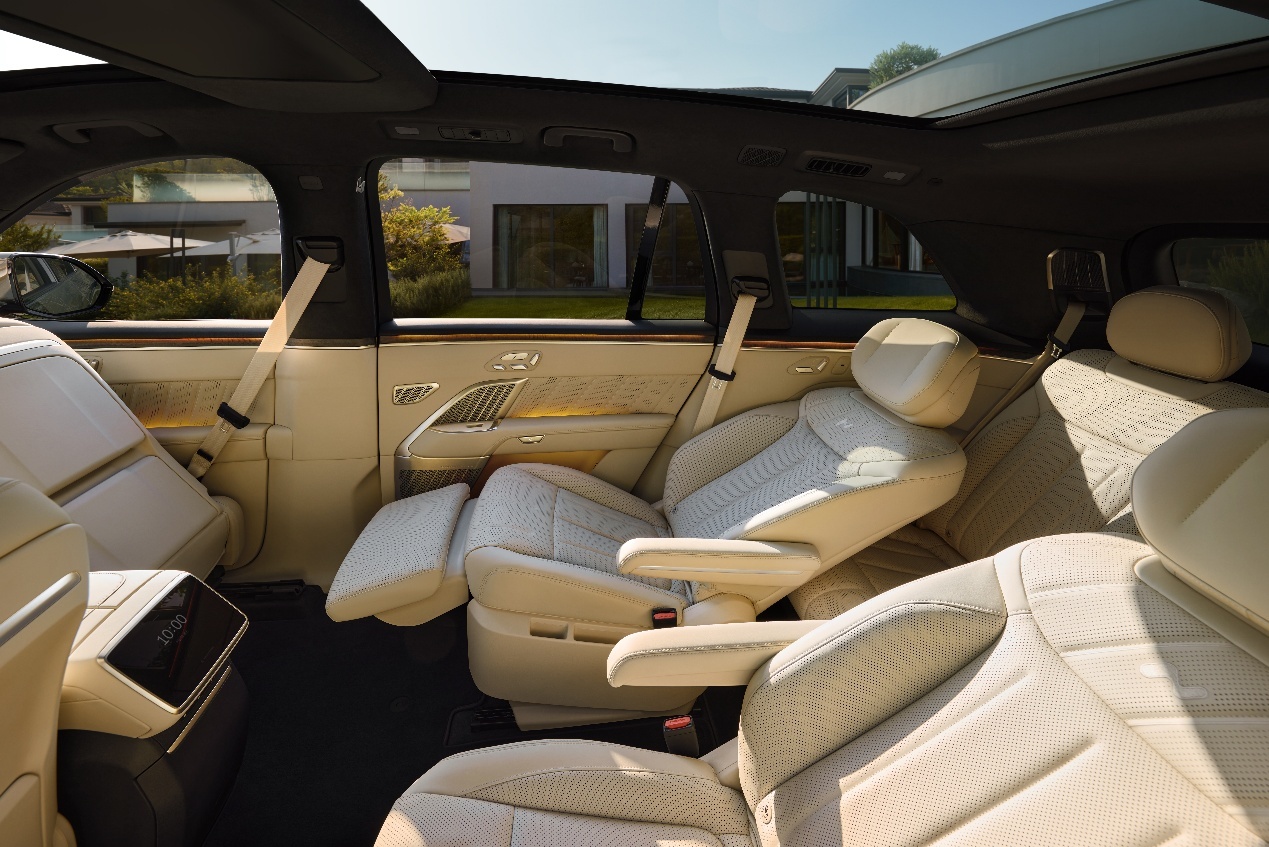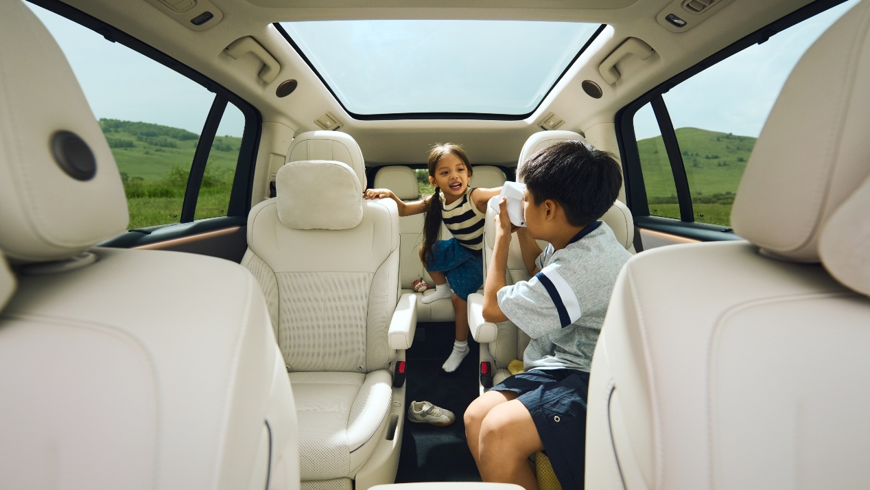 大尺寸SUV的卖点:空间。这方面双方各有千秋,理想i8在车厢流线型设计和纯电架构优势下,尽管尺寸略小,但i8空间的实际空间相当宽敞,是标准的6座设计。相较L系列SUV,i8优化座椅版型和材料,后排提供双小桌板。值得一提的是空气悬架的存在,使得新车第二排门槛高度降低,方便老人和儿童上下车,所有座椅提供电动调节和加热。