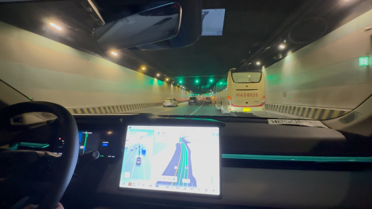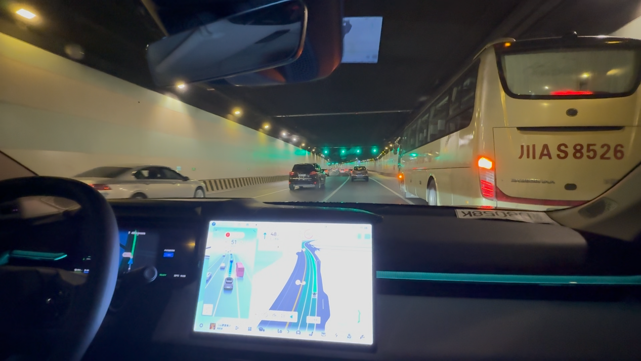 我在隧道内行驶的时候,右手车道的一台和我并行的大客车,突然要压实线变道,本来隧道里的车速就不低,我当时还在和副驾的好朋友聊天,幸好有这套辅助驾驶系统帮忙,车子立马采用了让速不让道的策略,既让这台大客车先行通过、避免碰撞,也不会影响左右车道的其它车辆。