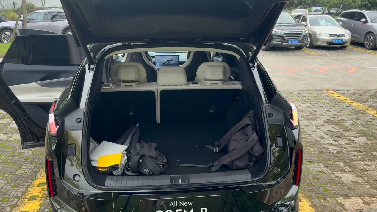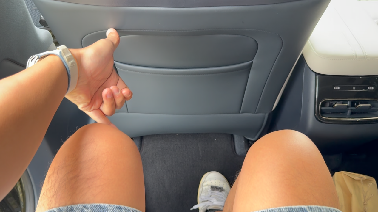 一方面,领克08 EM-P的轴距做到了2848mm,光看数据也许没什么感受,我身高1米83,把前排调到舒服的位置以后,车辆后排的腿部空间依然很宽敞,头部空间也做到了4指有余。这个表现还是非常不错的。