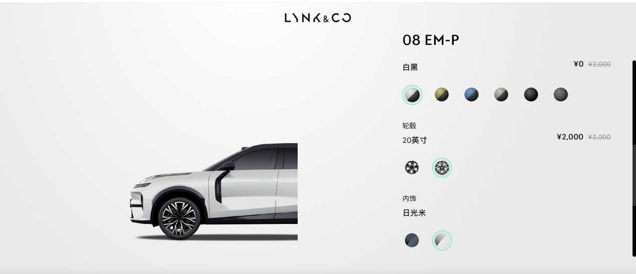 另外还要补充一点,就是我非常建议各位,无论你买哪个配置的领克08 EM-P,都再多花2000块钱去选配20寸轮毂,因为你如果不选的话,用的是235/55 R19的圈胎,而选了以后就变成255/45 R20的大尺寸宽胎,不仅看起来更饱满,日常的驾驶稳定性也会更高。