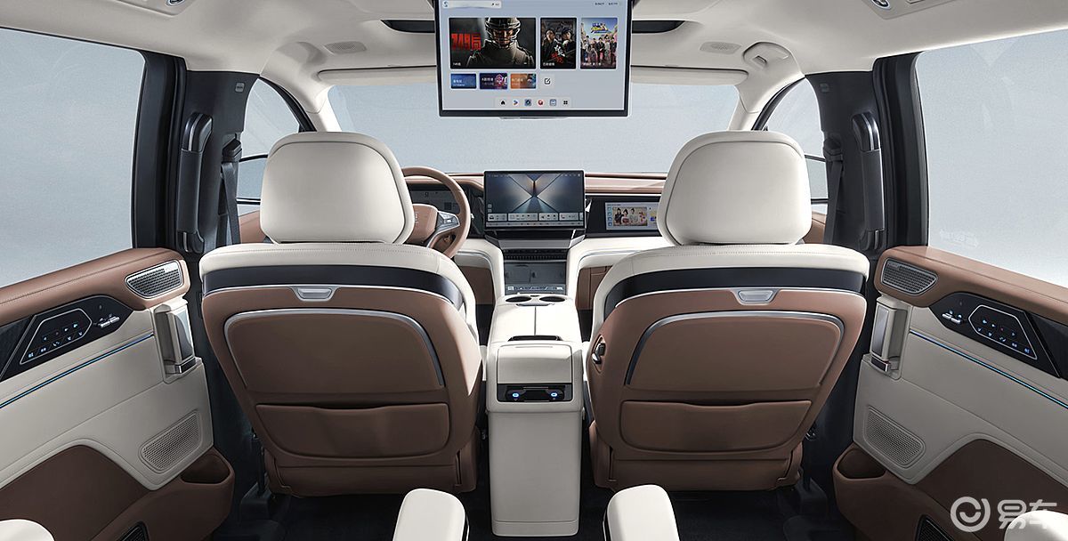 内饰延续 “四水归堂” 设计理念,融入庑殿顶线条与中国结缝线等文化元素,配备 15.6 英寸可旋转中控屏 + 后排吸顶屏,搭载 DiLink 150 智能座舱,支持面部识别、情绪感知与车家互联生态。