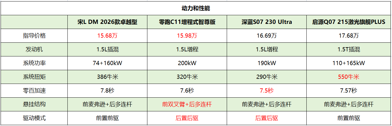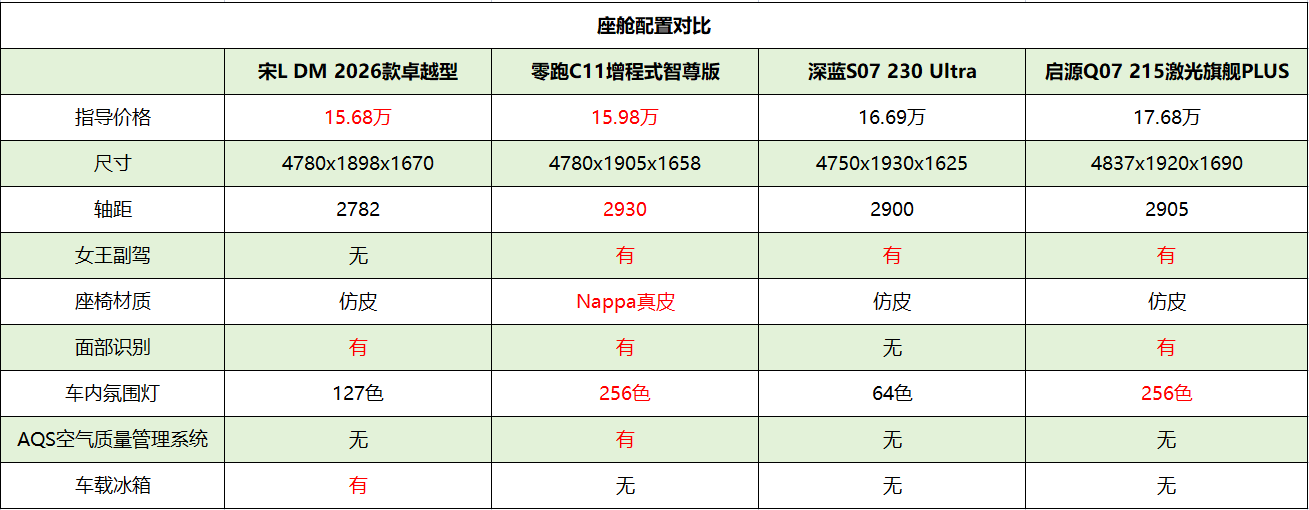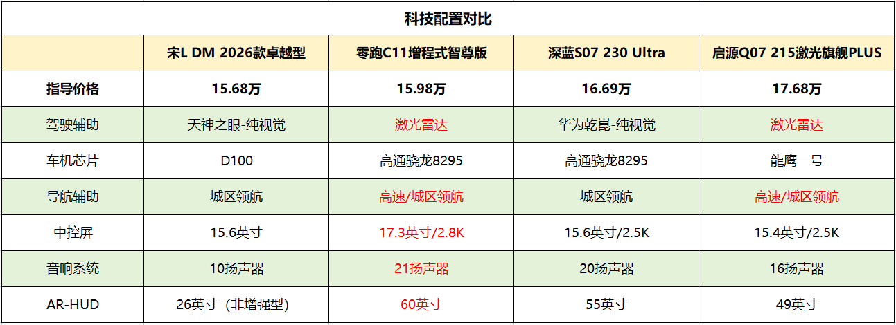冬季购车:宋L、零跑C11、深蓝S07、启源Q07横评