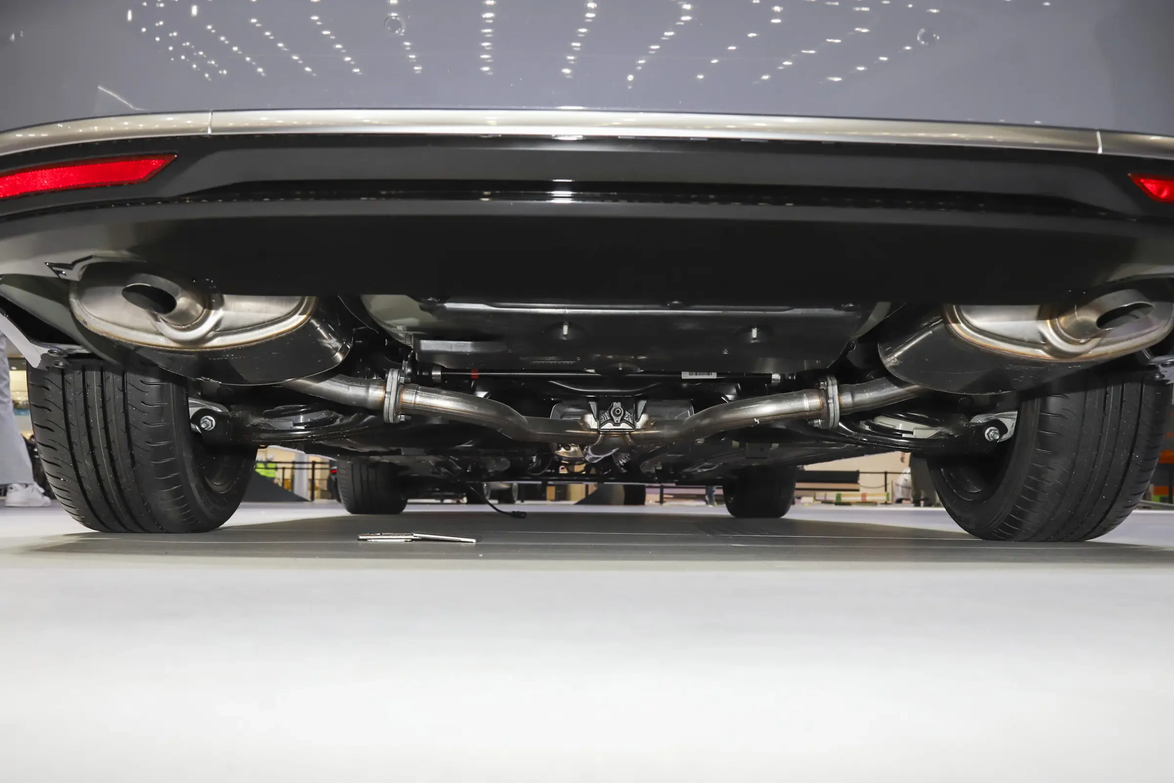 至于说车尾,尾灯还是保持了鱼鳍状的侧边处置,但它现在完成了全熏黑处置并在一个更加锐利的扰流尾翼下完成了横向贯穿,而内部灯腔则采用了横向光带与纵向羽翼排列设计,看上去也比现款要高级。另外,后保险杠现在变得干练了起来,除了隐藏排气管外,简单的金属防剐蹭条与小号烤漆装饰形成了融合,看上去也跟前脸所提到的电感相似。