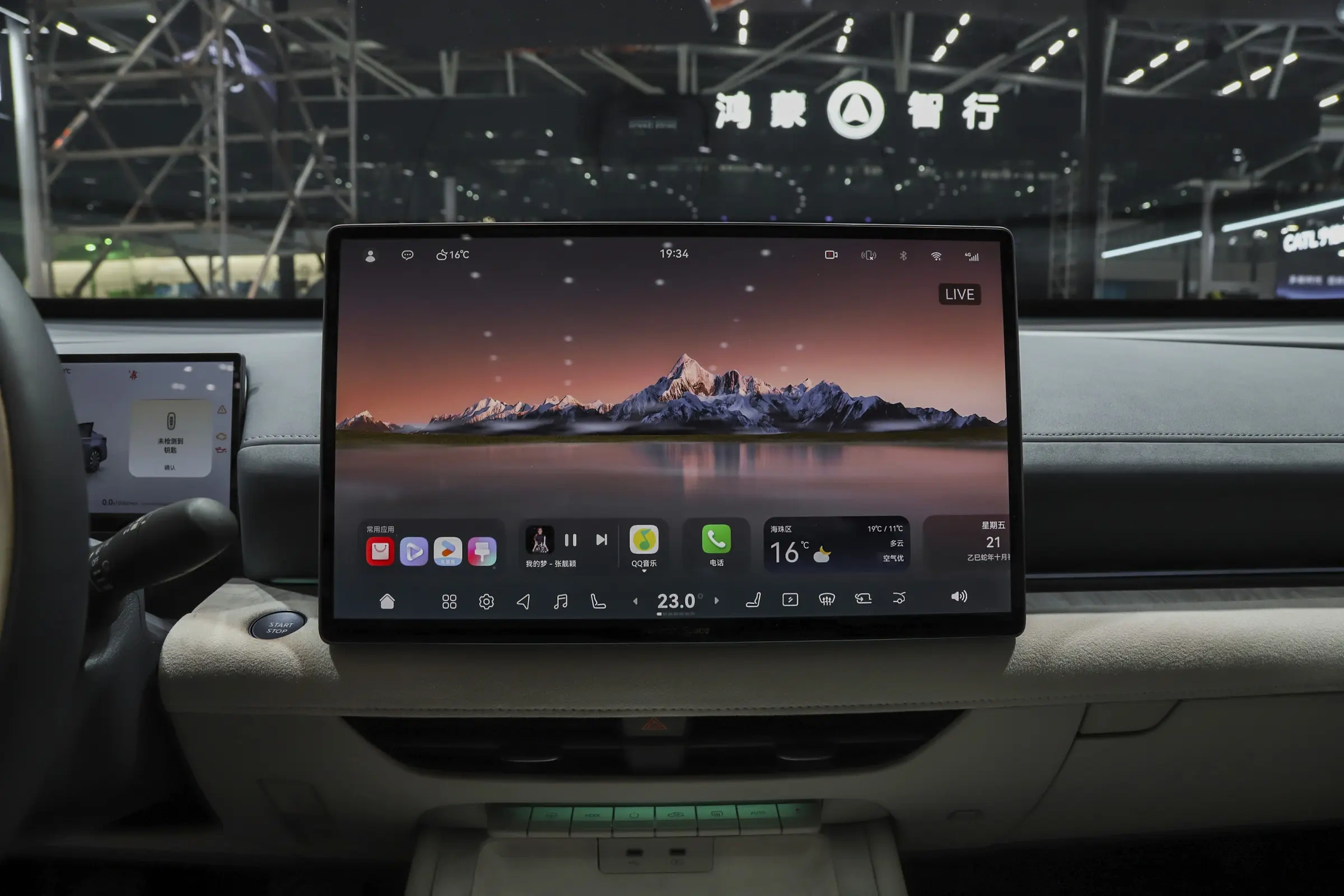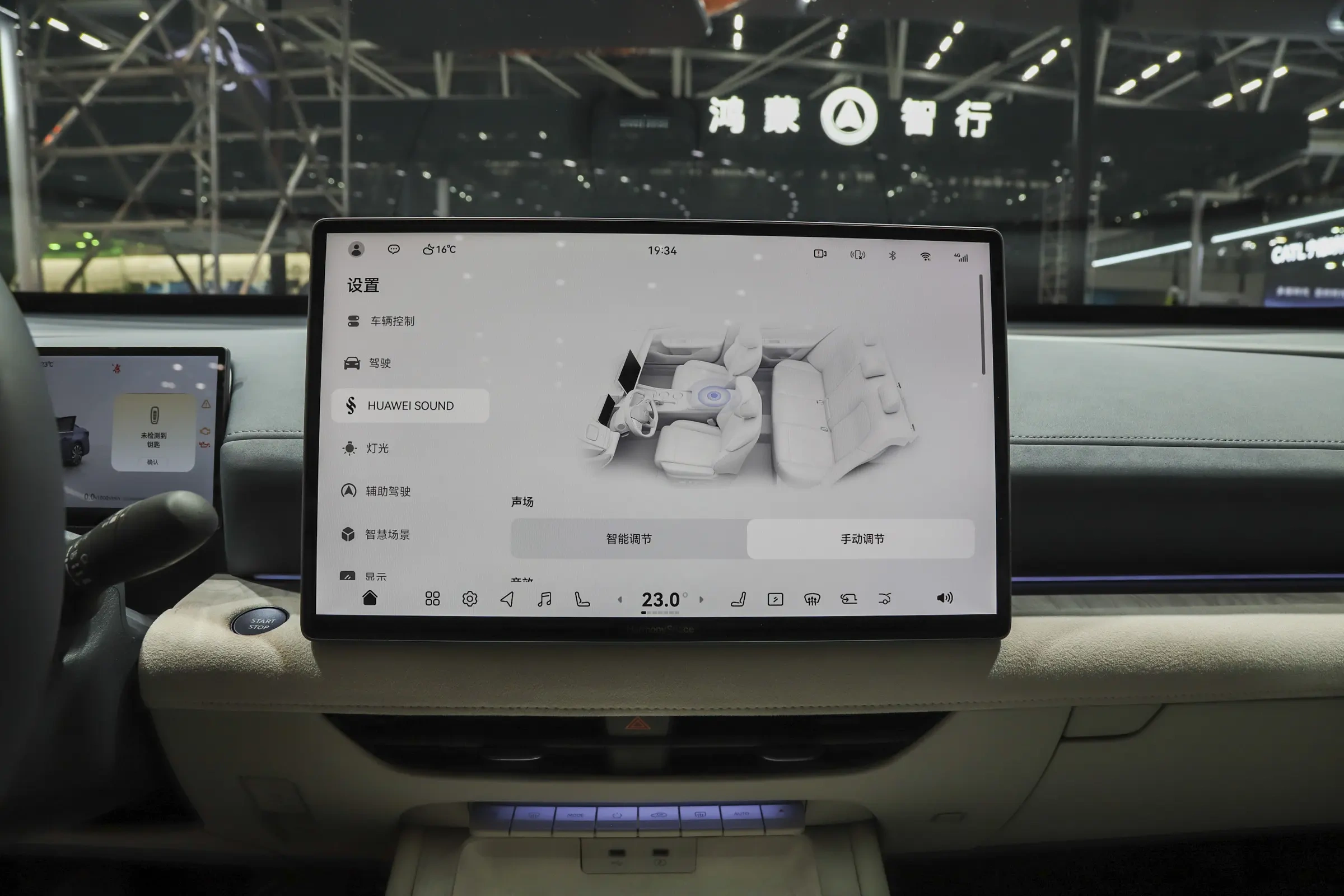 当然,座舱最关键的升级还是在于鸿蒙座舱HarmonySpace 5的搭载。其中,15.6英寸屏幕就是配套的HUAWEI山海画质车载智慧屏,并配有人脸识别摄像头与手势感应器;而车机本身则支持华为设备间的流转接力、AI语音智慧助手,还集成了无麦K歌等娱乐功能。此外,车辆还搭载了15扬或17扬声器组成的HUAWEI SOUND,配合翻毛装饰材质、主动氛围灯、双排隔音玻璃以及可开启的全景天窗,出行途中的舱内娱乐氛围也会是很高的。
