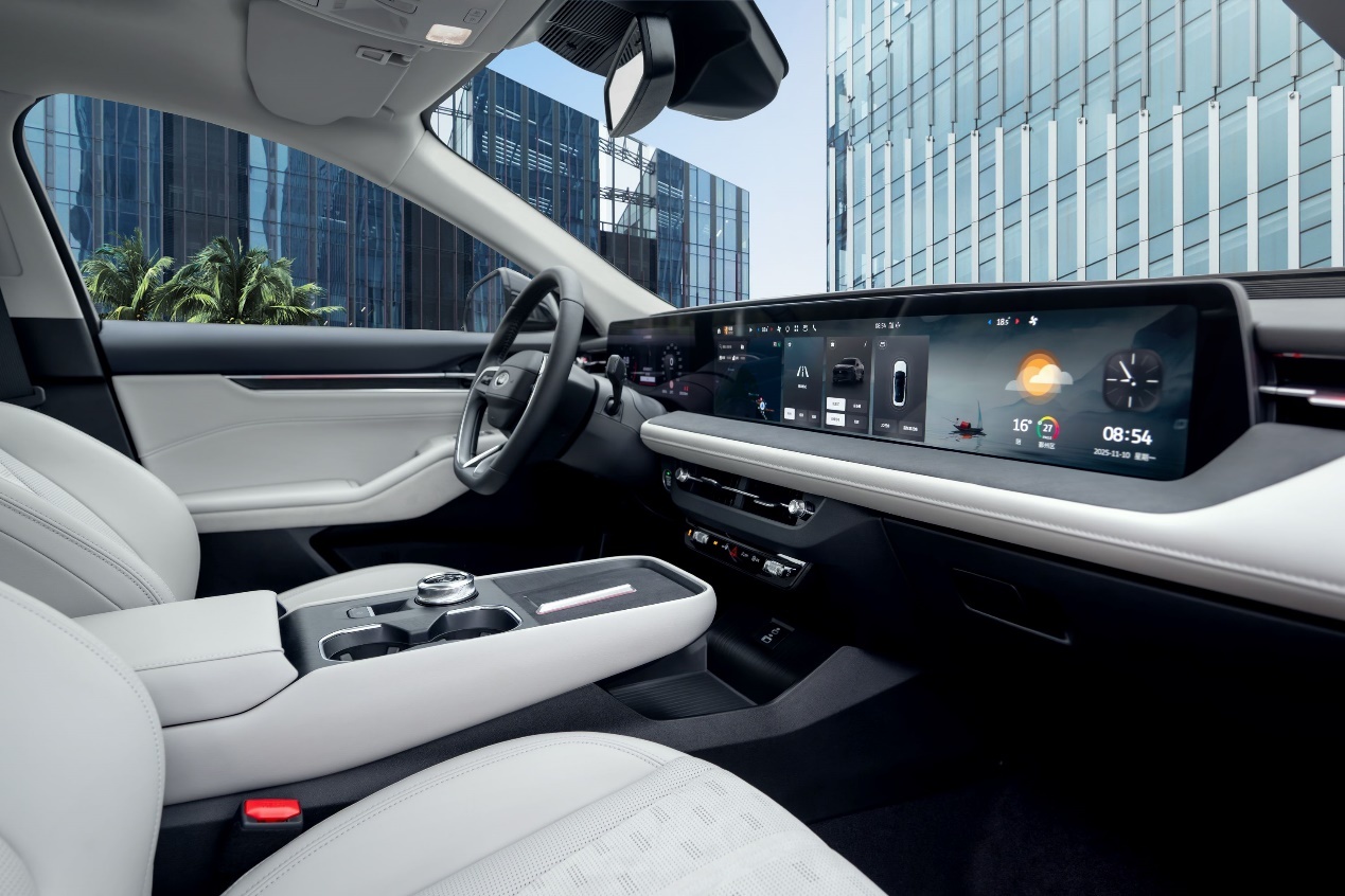 福特新蒙迪欧的内饰充满了科技气息,除两个入门版本外,其他版本均配备了分辨率达到了4K的27英寸中控屏,与12.3英寸液晶仪表。整块屏幕的长度达到了1.1米,不仅功能丰富,视觉观感也相当震撼。