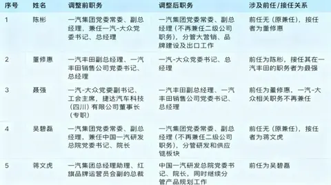 2025年最后一个工作日,一汽集团抛出年内重磅人事调整方案,掀起了一场覆盖核心合资板块与自主品牌的高管换防的风暴。