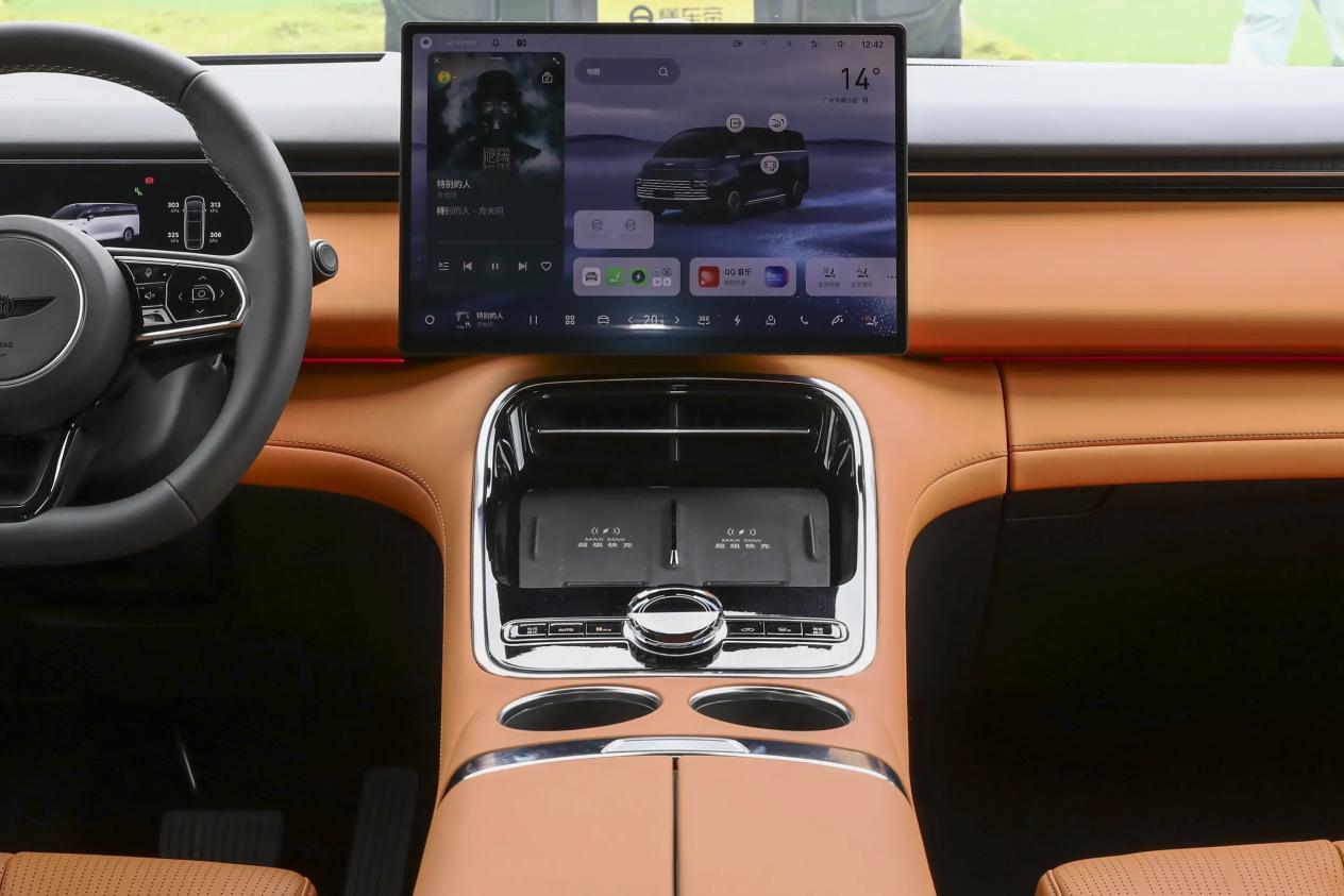 吉利银河V900内饰提供霞光橙和晨曦米颜色可以选择,两种颜色都有自己的调性,仪表台采用了被称为“步步高升”的三层递进式造型,灵感源自中国古典建筑的层叠阶梯。新车还配备有15.4英寸中控屏+10.25英寸仪表屏+19.8英寸AR-HUD,提供Flyme Auto 2智能座舱系统,搭载骁龙8295P芯片。